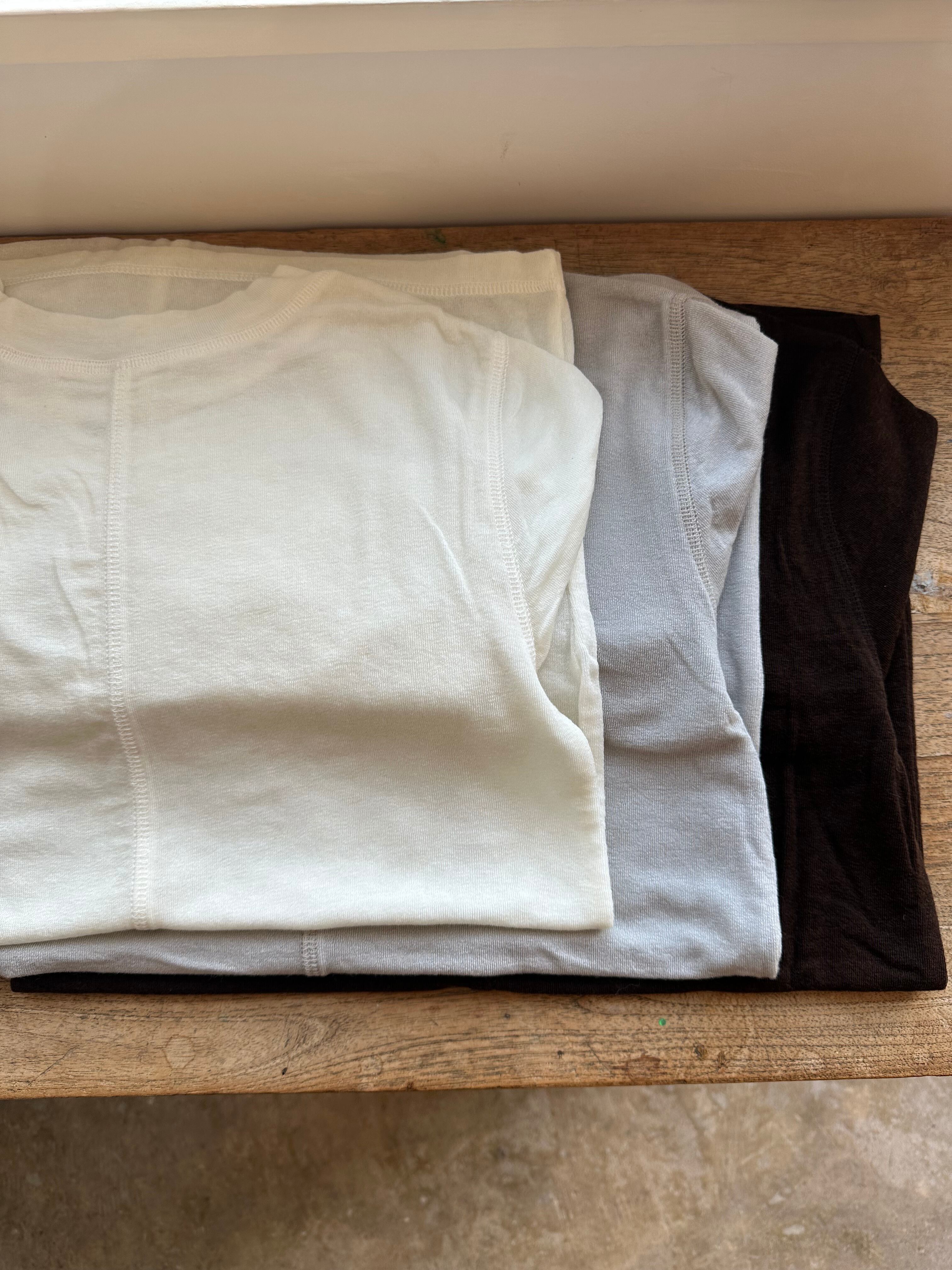 レイヤードのインナーとして程よい丈感なのも着やすいポイント◎