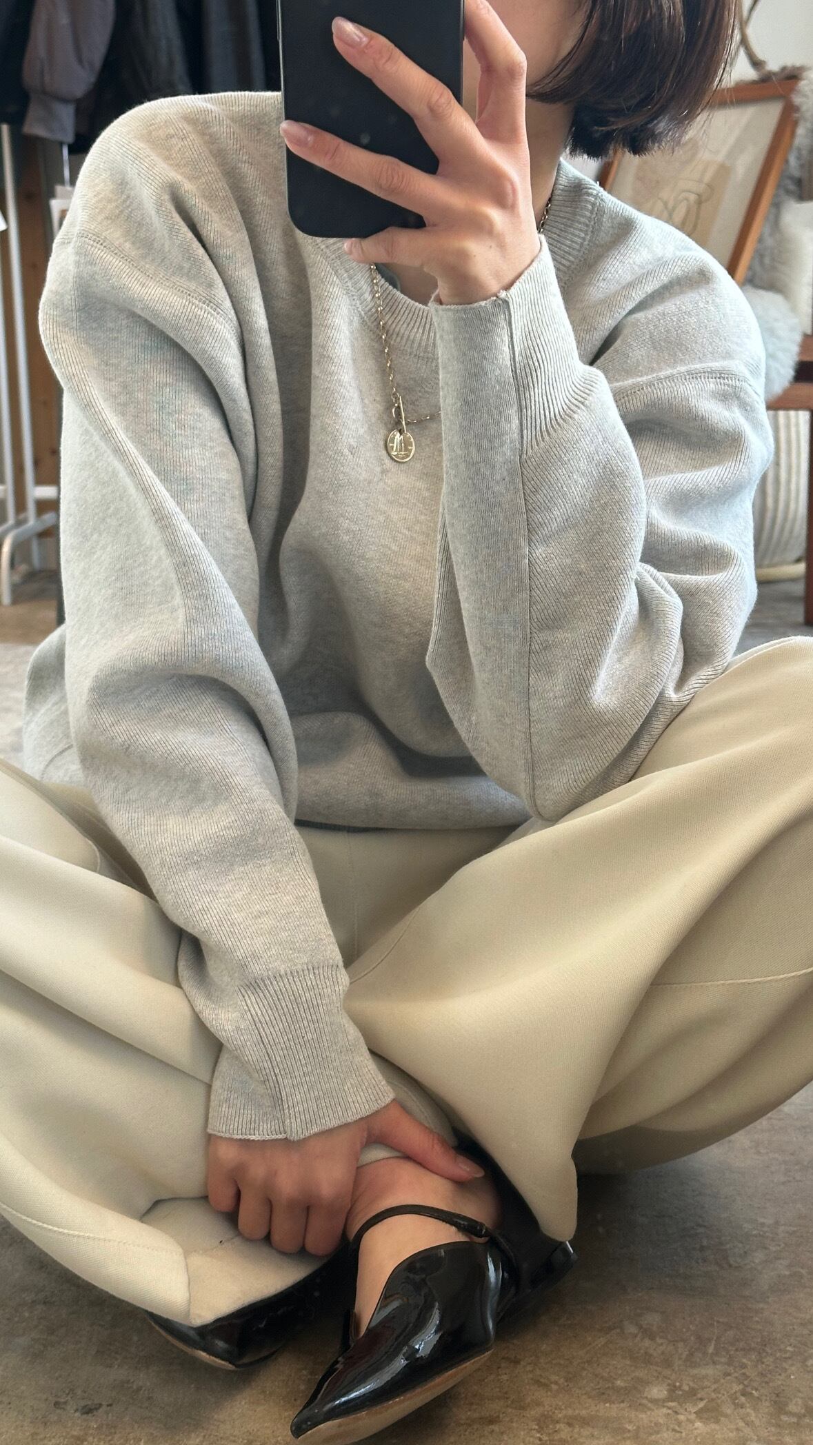綿混丸首ニット