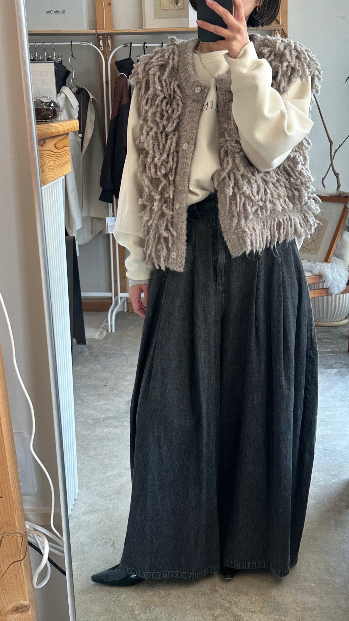 軽やかさとデザイン性を兼ね備えたこのデニムで、季節を問わずスタイリッシュな装いを楽しんでください◎