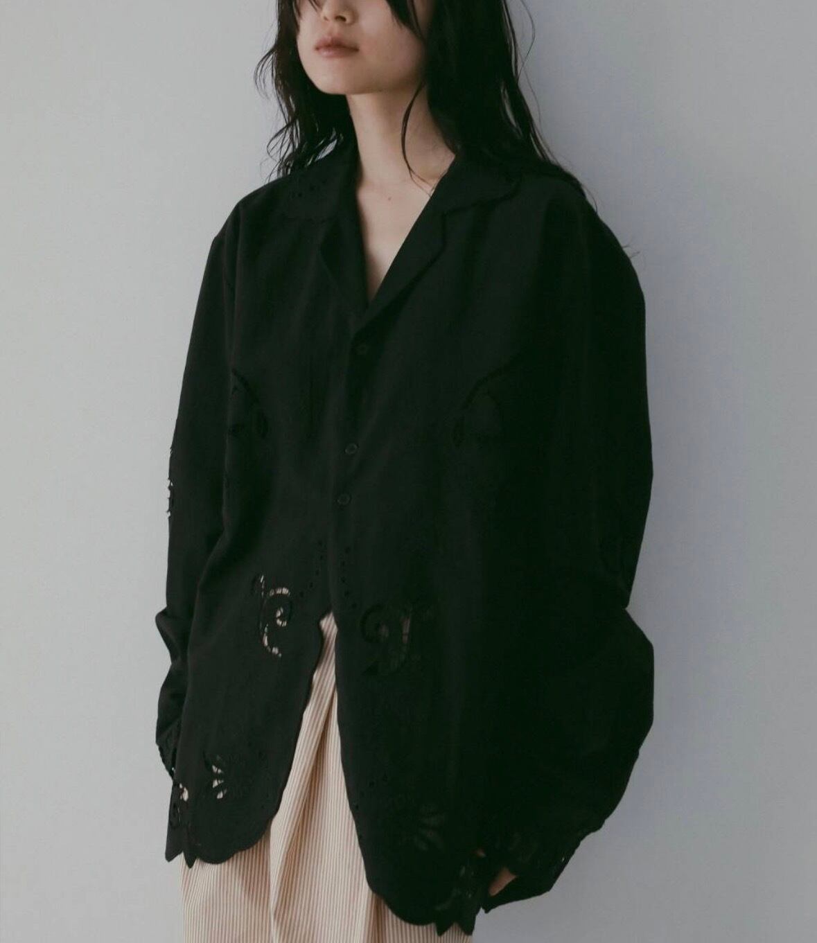 カットワーク刺繍が目を惹くインド製の開襟シャツ。袖と前身に大きく刺繍柄を入れ、これだけでコーディネートに華を添えます。スカラップ刺繍で仕上げた襟と裾もポイント。インド製ならではの繊細なディテールが、袖を通すだけで気分を高めてくれる一枚。オーバーなサイズでラフに仕上げ、こなれた抜け感を演出。シンプルなボトムとのコーディネートはもちろん、バイカーパンツを合わせたモードな着こなしや、春夏の羽織りとしてもおすすめの一着。